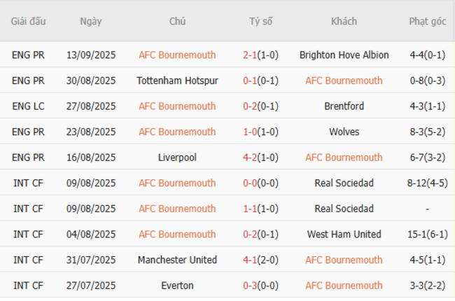 Trên đây là những nhận định và soi kèo bóng đá giữa 2 đội bóng AFC Bournemouth vs Newcastle United diễn ra vào lúc 20h00 ngày 21/09/2025. Hy vọng các chuyên gia đã cho bạn lựa chọn tâm đắc nhất trong trận đấu giữa AFC Bournemouth vs Newcastle United này.