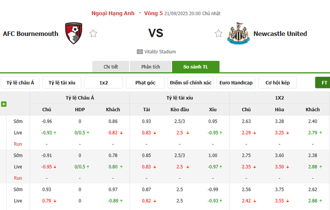 Nhận định soi kèo AFC Bournemouth vs Newcastle United, 20h00 ngày 21/09/2025