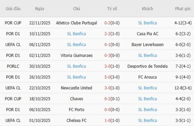 Đội khách đã chấm dứt chuỗi hai trận không thắng bằng chiến thắng 2-0 trước Atletico Clube de Portugal tại Taca de Portugal vào cuối tuần qua mặc dù Jose Mourinho đã phải thực hiện bốn sự thay đổi người trong hiệp một để xoay chuyển tình thế. Hiện đang nằm trong nhóm 16 đội mạnh nhất của giải đấu, Benfica đã nâng cao chiếc cúp Supertaca vào đầu mùa giải đã có những tiến triển ổn định trên mặt trận quốc nội khi cũng lọt vào bán kết Cúp Liên đoàn.