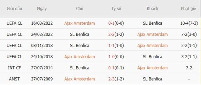 Thành tích đối đầu quá khứ giữa Ajax Amsterdam vs Benfica