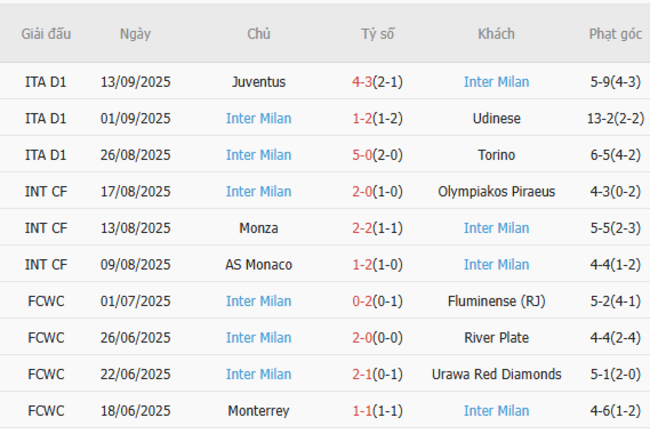 Hơn thế nữa, ở lần ra sân gần nhất tại Serie A, đoàn quân của HLV Christian Chivu đã nhận thất bại 3-4 trên sân của Juventus, cay đắng hơn khi Nerazzurri để lọt lưới 2 bàn từ phút 82-90+1 của trận đấu.