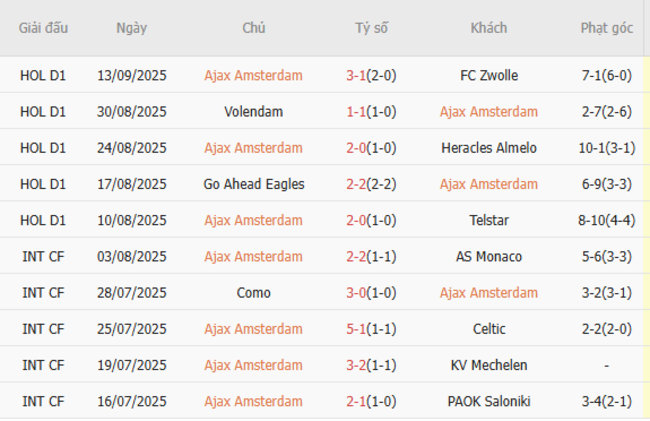 Ajax đã bất bại trong 5 trận gần đây (3 thắng, 2 hòa), một phong độ cực kỳ ổn định, ghi 10 bàn và chỉ để lọt lưới 4 bàn, thể hiện sự cân bằng giữa tấn công và phòng ngự.