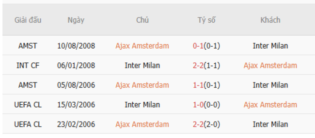 Thành tích đối đầu quá khứ giữa Ajax Amsterdam vs Inter Milan
