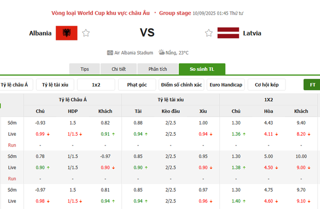 Soi kèo tài xỉu siêu chuẩn - Albania vs Latvia