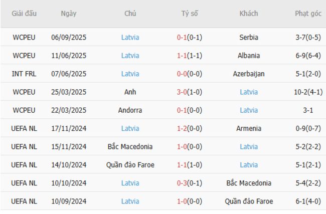 Trong khi đó, Latvia lại thể hiện một bộ mặt thiếu thuyết phục hơn. Họ chỉ có 1 chiến thắng, 2 trận hòa và 2 thất bại. Hàng công yếu ớt chỉ ghi 2 bàn, trong khi hàng thủ lại lỏng lẻo khi để thủng lưới đến 5 lần.