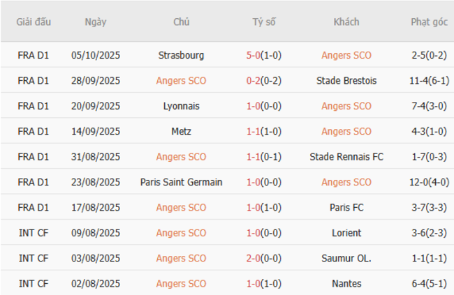 Phong độ của Angers