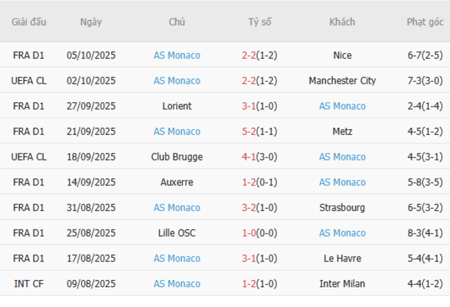 Trước đó, Monaco đã phải chịu trận thua 3-1 trước Lorient ở hạng đấu cao nhất nước Pháp trước khi hòa 2-2 với Manchester City ở Champions League, một chuỗi kết quả càng làm nổi bật thêm điểm yếu trong hàng phòng ngự của đội bóng.