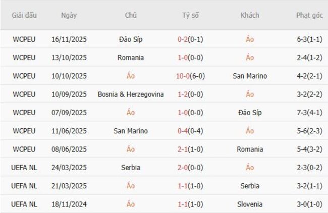 Phong độ của Áo
