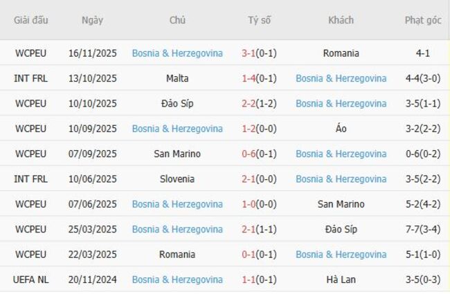 Phong độ của Bosnia Herzegovina