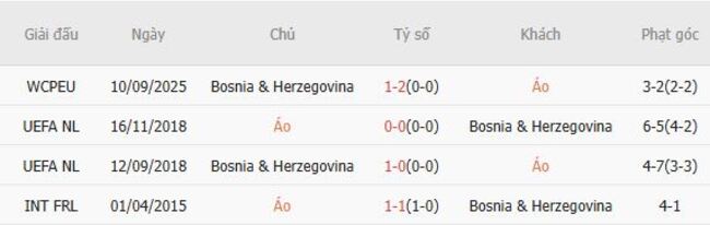 Thành tích đối đầu quá khứ giữa Áo vs Bosnia Herzegovina