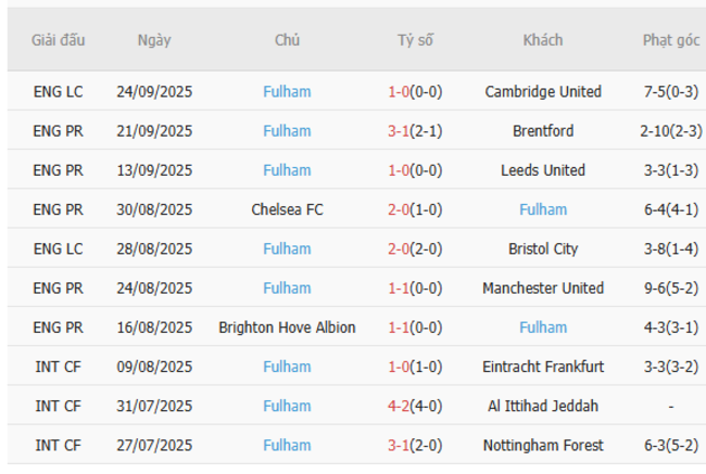 Sau hai chiến dịch liên tiếp kết thúc ở vị trí giữa bảng xếp hạng một cách thoải mái, Fulham đang thực hiện nhiệm vụ đạt đến trình độ của Aston Villa và đủ điều kiện tham dự giải đấu châu Âu, khi đội khách vào chủ nhật sẽ có khởi đầu thuận lợi trên sân nhà cho mùa giải 2025-26.