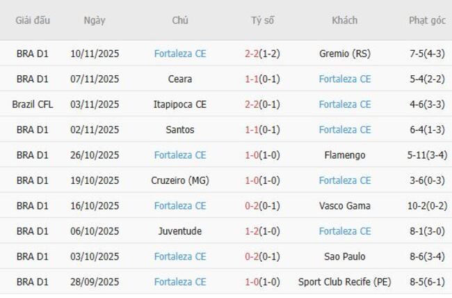 Fortaleza có thành tích bảy trận thắng, chín trận hòa và 16 trận thua trong 32 trận đấu tại Brasileiro mùa này, với 30 điểm giúp họ đứng ở vị trí thứ 19 trên bảng xếp hạng.