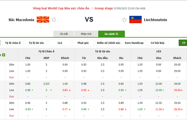 Phán đoán tỷ số - Bắc Macedonia vs Liechtenstein