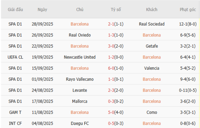 Barcelona đang thể hiện sức mạnh tuyệt đối với chuỗi 5 chiến thắng liên tiếp. Đội bóng của Hansi Flick đã ghi tới 16 bàn và chỉ để thủng lưới 3 lần trong cùng giai đoạn.