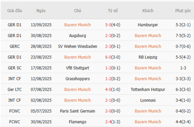 Bayern Munich đang thể hiện một phong độ hủy diệt với 5 chiến thắng liên tiếp. Sức mạnh tấn công của họ rất đáng gờm khi ghi tới 19 bàn, dù hàng thủ để lọt lưới 5 lần.