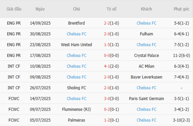 Chelsea cũng duy trì chuỗi 5 trận bất bại, với 3 chiến thắng và 2 trận hòa. Mặc dù ghi được 13 bàn thắng, nhưng họ cũng để thủng lưới 4 lần, cho thấy hàng thủ vẫn cần cải thiện.