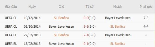 Thành tích đối đầu quá khứ giữa Benfica vs Leverkusen
