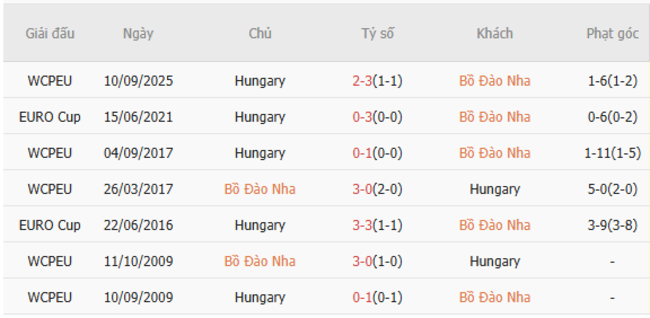 Thành tích đối đầu quá khứ giữa Bồ Đào Nha vs Hungary