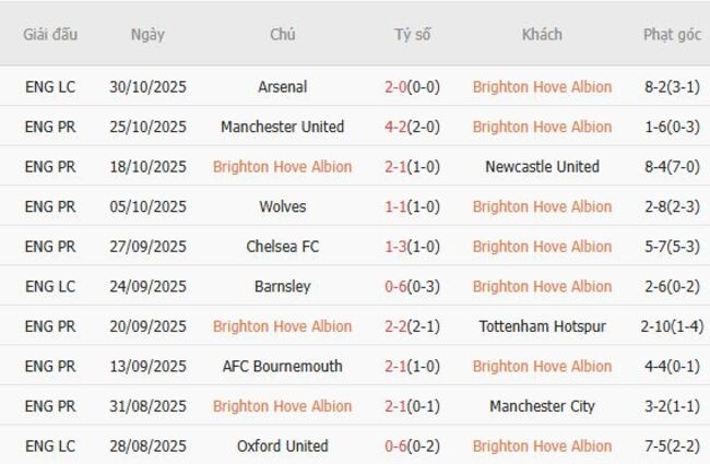 Phong độ của Brighton
