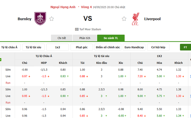 Soi kèo tài xỉu siêu chuẩn - Burnley vs Liverpool
