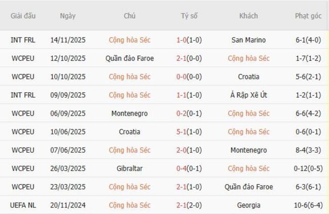 Phong độ gần đây của CH Séc với hai chiến thắng, hai trận hòa và một trận thua trong năm trận gần nhất trên mọi đấu trường, cho thấy sự ổn định nhưng không quá ấn tượng. Đội chủ nhà bước vào trận đấu này với sự tự tin cao độ sau chiến thắng giao hữu 1-0 trước San Marino, kết quả này giúp vực dậy tinh thần sau trận thua đáng thất vọng 1-2 trước Quần đảo Faroe ở vòng loại trước đó.