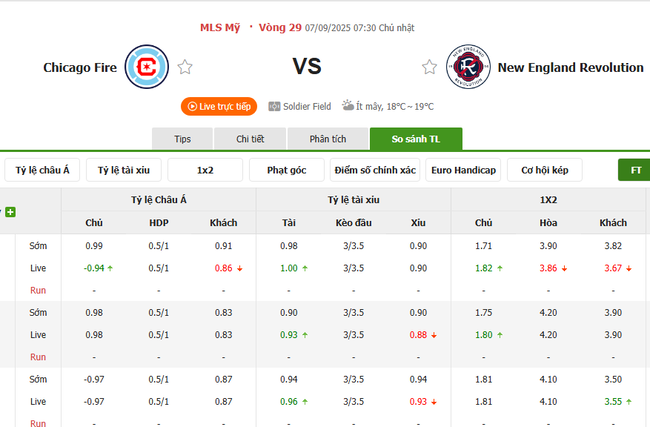 Soi kèo tài xỉu siêu chuẩn - Chicago Fire vs New England Revolution