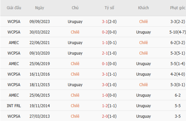 Thành tích đối đầu quá khứ giữa Chile vs Uruguay