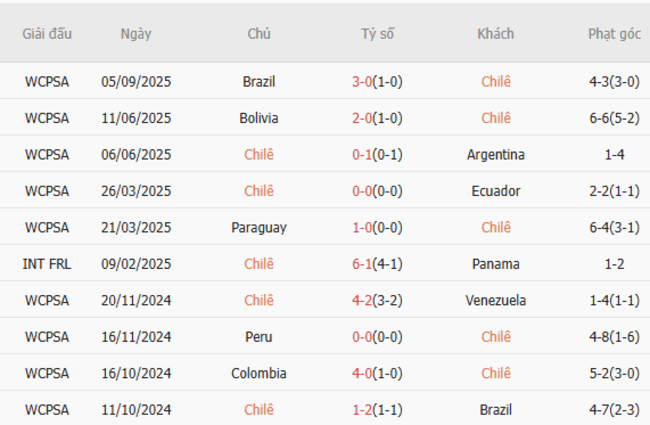 Phong độ của Chile đang ở mức báo động khi họ không thắng trong 5 trận gần nhất (4 thua, 1 hòa). Đáng lo ngại hơn, hàng công của họ đã tịt ngòi hoàn toàn, không ghi được bàn thắng nào, trong khi hàng thủ lại để lọt lưới tới 7 lần.