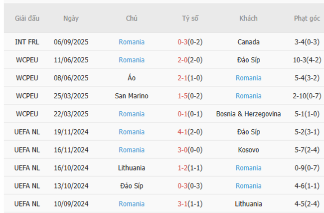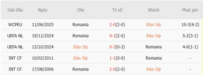 Thành tích đối đầu quá khứ giữa Đảo Síp vs Romania