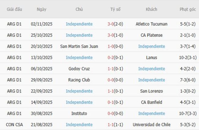 Independiente đã thể hiện chất lượng trên sân nhà nhưng vẫn đang tìm kiếm sự ổn định trên sân khách. Chiến thắng 3-0 gần đây trước Atletico Tucuman và Platense cho thấy sức mạnh tấn công của họ, nhưng trên sân khách, câu chuyện lại hoàn toàn khác. Họ đã phải nhận thất bại trước San Martin và Velez Sarsfield, trong khi vẫn hòa trước Godoy Cruz, Racing Club và Instituto.