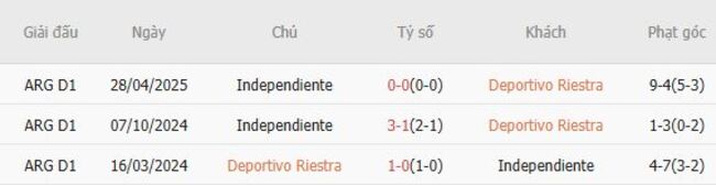 Thành tích đối đầu quá khứ giữa Deportivo Riestra vs Independiente