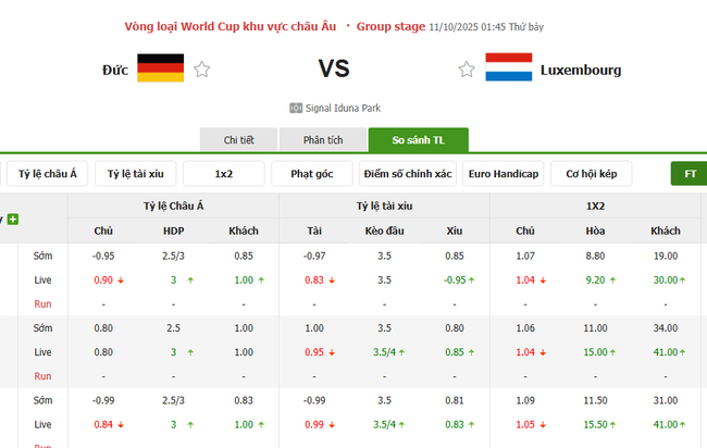Tỷ kệ kèo Đức vs Luxembourg