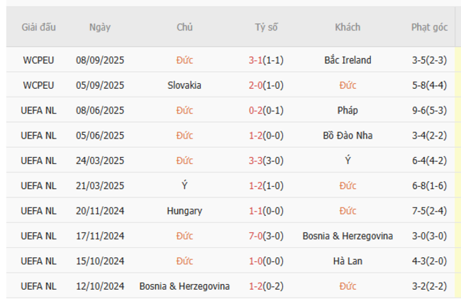 Phong độ gần đây - Đức vs Luxembourg