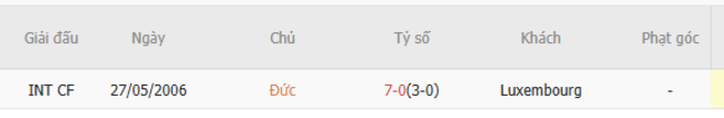 Thành tích đối đầu quá khứ giữa Đức vs Luxembourg