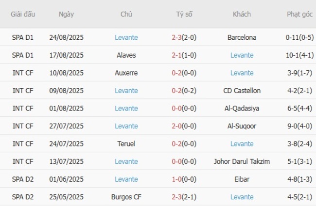 Trên đây là những nhận định và soi kèo bóng đá giữa 2 đội bóng Elche vs Levante diễn ra vào lúc 0h30 ngày 30/08/2025. Hy vọng các chuyên gia đã cho bạn lựa chọn tâm đắc nhất trong trận đấu giữa Elche vs Levante này.