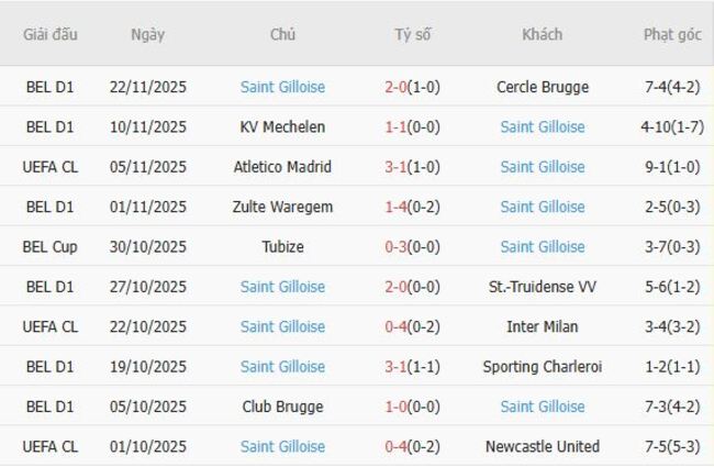 - Kết quả chung cuộc: Galatasaray 3-1 Saint Gilloise