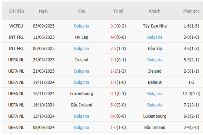 Trái lại, Bulgaria đang trải qua chuỗi trận đáng thất vọng khi không thắng trận nào trong 5 trận đã qua, thua tới 4 và chỉ hòa 1. Sự yếu kém của họ thể hiện rõ rệt ở hàng thủ khi để thủng lưới 13 bàn, trong khi chỉ ghi được 4 bàn.