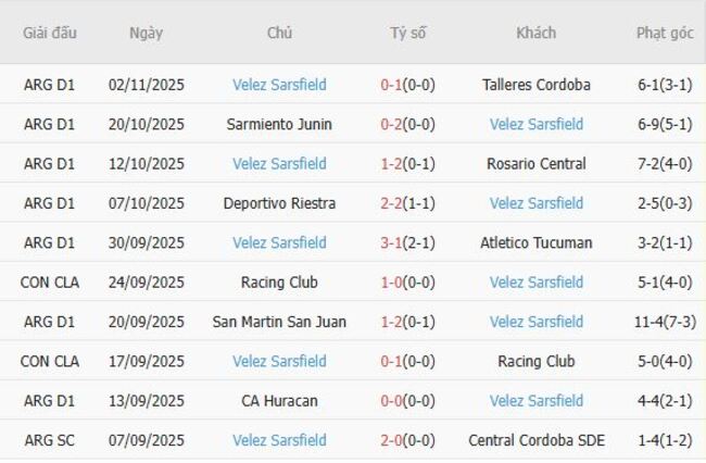 Trong 5 trận gần đây, Velez tung ra tới 36 cú sút và giành 22 quả phạt góc – con số phản ánh lối chơi áp đặt và khả năng gây sức ép tầm cao. Velez Sarsfield thể hiện sự thiếu ổn định khi thi đấu xa nhà: chỉ đạt tỷ lệ thắng 25% trong bốn trận sân khách gần nhất, một con số phản ánh rõ hạn chế trong khả năng duy trì hiệu suất ở môi trường áp lực.