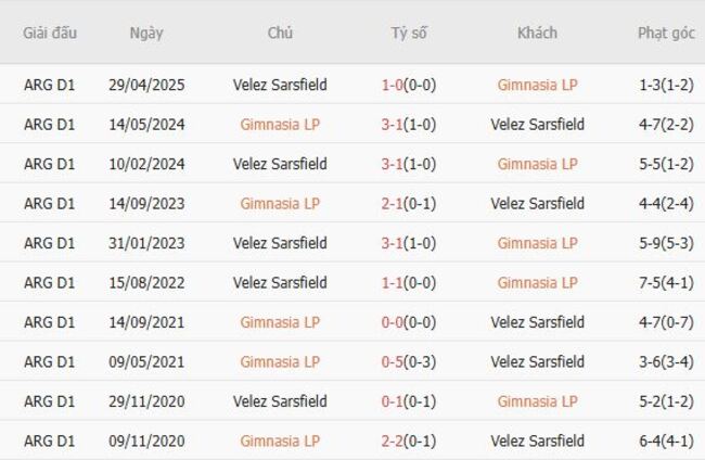 Thành tích đối đầu quá khứ giữa Gimnasia LP vs Velez Sarsfield