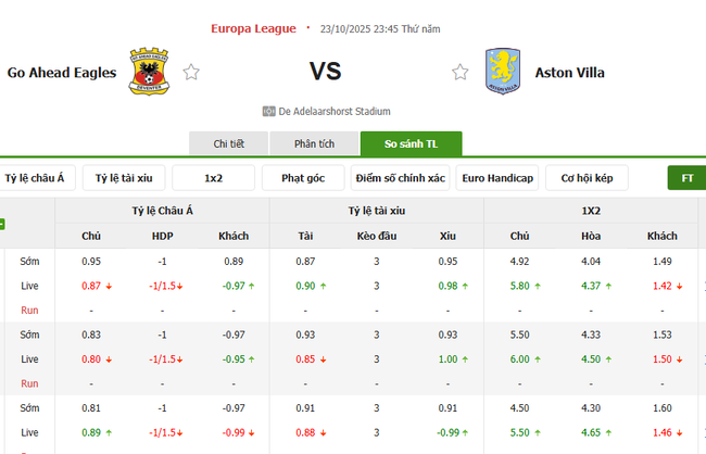 Trên đây là những nhận định và soi kèo bóng đá chuyên sâu cho màn thư hùng giữa Go Ahead Eagles vs Aston Villa diễn ra vào lúc 23h45 ngày 23/10/2025.