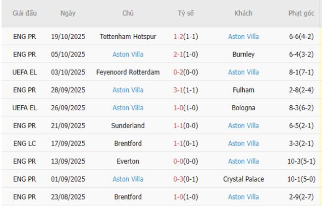 Cuối tuần qua, Villa đã giành chiến thắng thứ ba liên tiếp tại giải đấu khi đánh bại Tottenham 2-1 - chiến thắng thứ ba liên tiếp của họ trong tháng Mười - sau chiến thắng 2-0 trước Feyenoord ở. Về mặt tấn công, họ không phải là đội ghi bàn nhiều nhất, trung bình khoảng 1 bàn mỗi trận, nhưng về mặt phòng ngự, họ đã chơi rất ấn tượng với bốn trận giữ sạch lưới trên mọi đấu trường mùa này.
