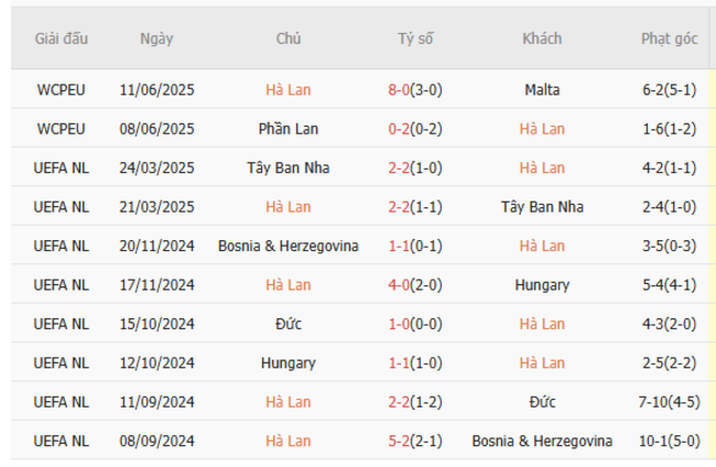 Hà Lan bước vào trận đấu với phong độ ấn tượng, khi bất bại hoàn toàn trong 5 trận gần nhất với 2 chiến thắng và 3 trận hòa. Các chân sút xứ sở hoa Tulip thi đấu cực kỳ bùng nổ khi ghi tới 15 bàn, trong khi hàng thủ chỉ để lọt lưới 5 lần.