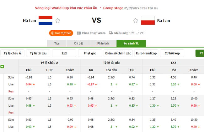 Tỷ kệ kèo Hà Lan vs Ba Lan