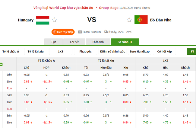 Tỷ kệ kèo Hungary vs Bồ Đào Nha
