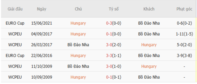 Thành tích đối đầu quá khứ giữa Hungary vs Bồ Đào Nha