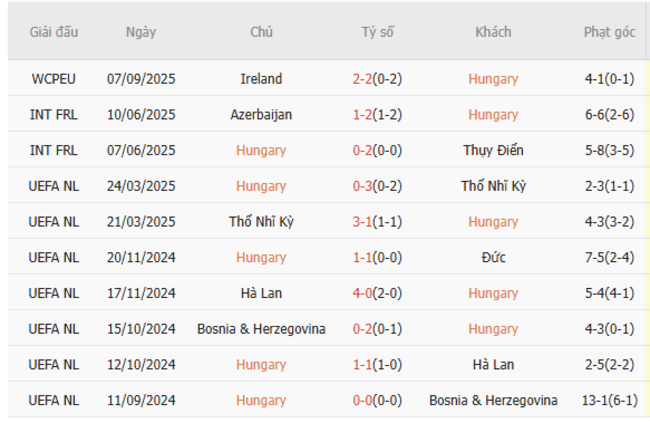 Phong độ gần đây - Hungary vs Bồ Đào Nha