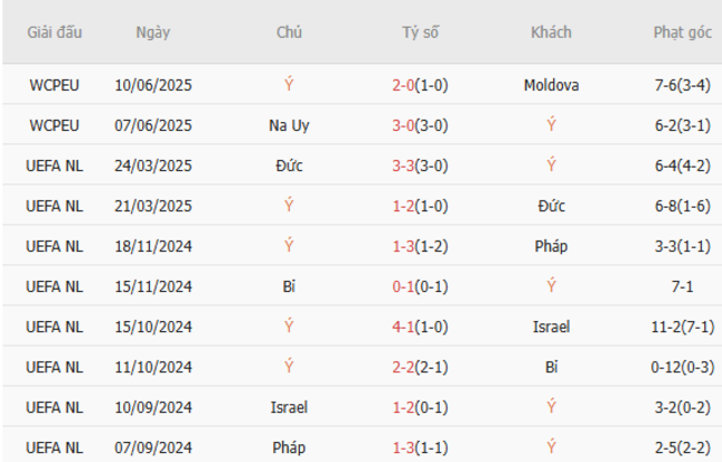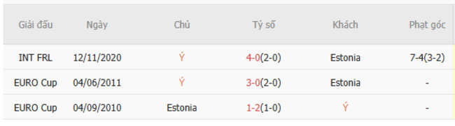 Thành tích đối đầu quá khứ giữa Italia vs Estonia