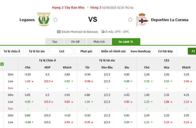 Tỷ kệ kèo Leganes vs Deportivo La Coruna