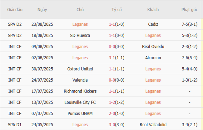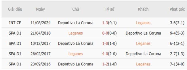 Thành tích đối đầu quá khứ giữa Leganes vs Deportivo La Coruna