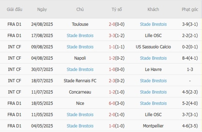 Phong độ của Stade Brestois